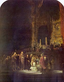 https://en.wikipedia.org/wiki/The_Woman_Taken_in_Adultery_(Rembrandt) | 1644 | Oil on panel | 83.8 x 65.4 | https://en.wikipedia.org/wiki/National_Gallery | 196 |