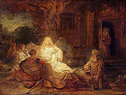 https://en.wikipedia.org/wiki/Abraham_Serving_the_Three_Angels | 1646 | Oil on panel | 16 x 21 | Private Collection | 208 |