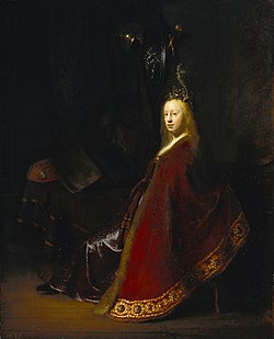Lighting Study with Hendrickje Stoffels in a Silk Gown as a Model | c. 1659 | Oil on panel | 72.5 x 51.5 | https://en.wikipedia.org/wiki/St%C3%A4del | 277 |